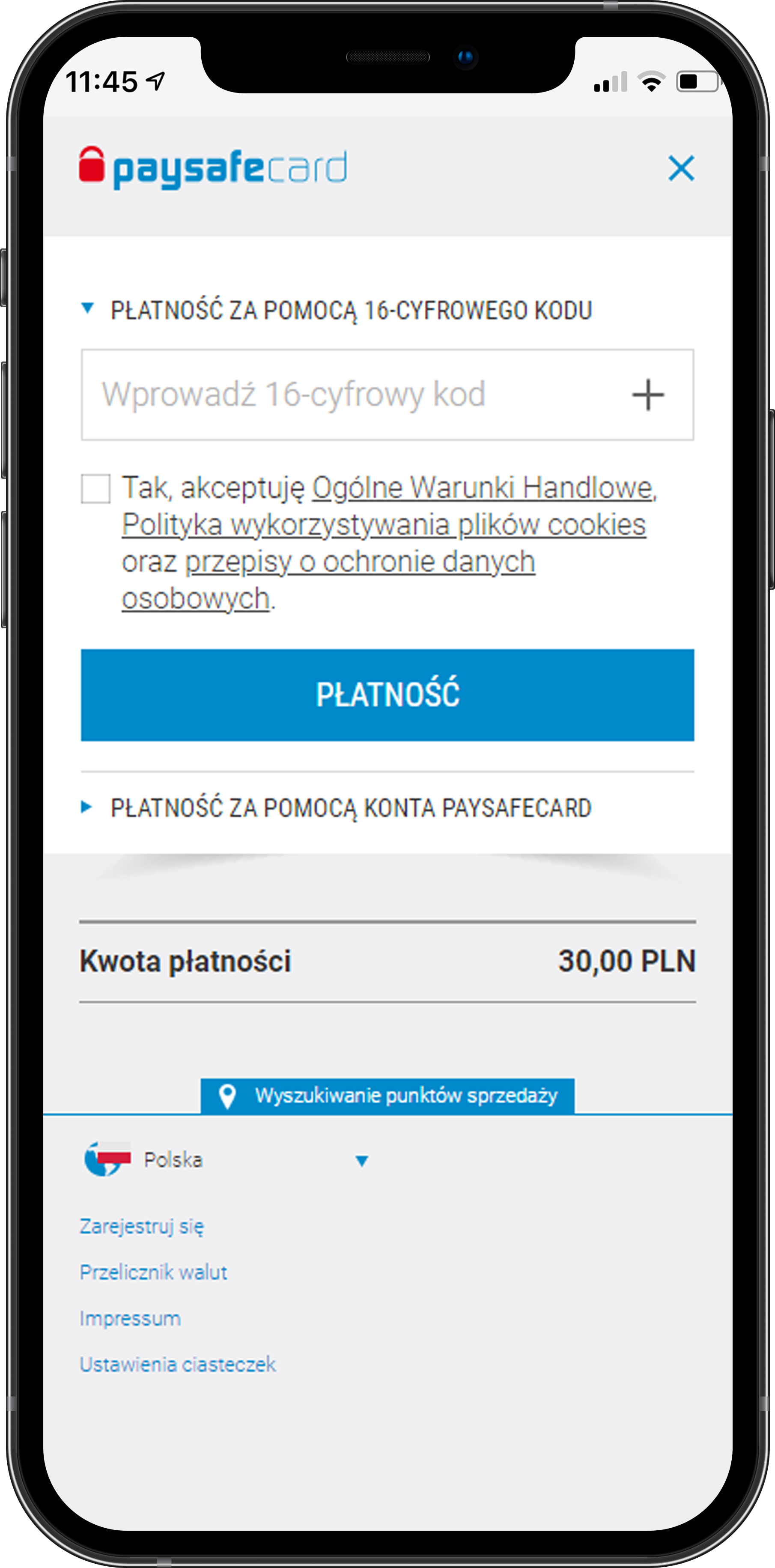 Kup kartę z kodem paysafecard, dostępne nominały to: 20, 30, 50, 100 i 200 PLN.